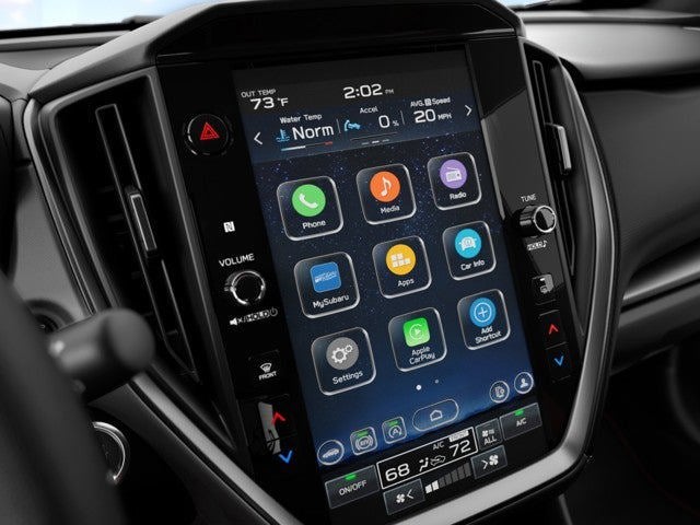 - Radio: Subaru 11.6" Multimedia Plus System -inc: valet mode, AM/FM stereo, HD Radio, multi-touch gesture high resolution display screen, voice activated controls, Bluetooth® audio streaming and hands-free phone connectivity, Bluetooth® hands-free SMS text messaging connectivity, iPod control capability, smartphone integration: wired and wireless Android Auto w/full screen view, wireless Apple CarPlay w/full screen view and wireless connection, USB and Over The Air (OTA) audio system update, audio system and Bluetooth® steering wheel control switches, 6 speakers (2 dash panel tweeter, 2 front door, 2 rear door), illuminated 3.5mm auxiliary input jack, illuminated USB A and C input charge ports, roof mounted satellite and connected services, roof mounted black antenna, connected services operation indicator, SOS emergency assistance (red button) and ehanced roadside assistance (blue i-button)